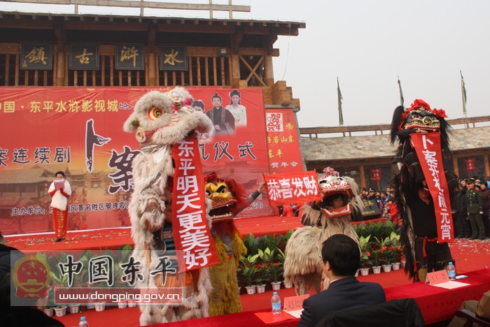 今天上午,位于东平湖畔的水浒影视城人声鼎沸、彩旗飘飘,备受社会各界广泛关注的大型古装电视连续剧《卜案》开机仪式在这里隆重举行。山东省旅游行业协会会长丁再献,副市长徐恩虎,市旅游局局长程明,县领导赵德健、刘祥涛、刘思宏、王骞、吴国庆、郭冬云、王长勇、靳兆宏以及《卜案》剧组主创人员出席开机仪式。