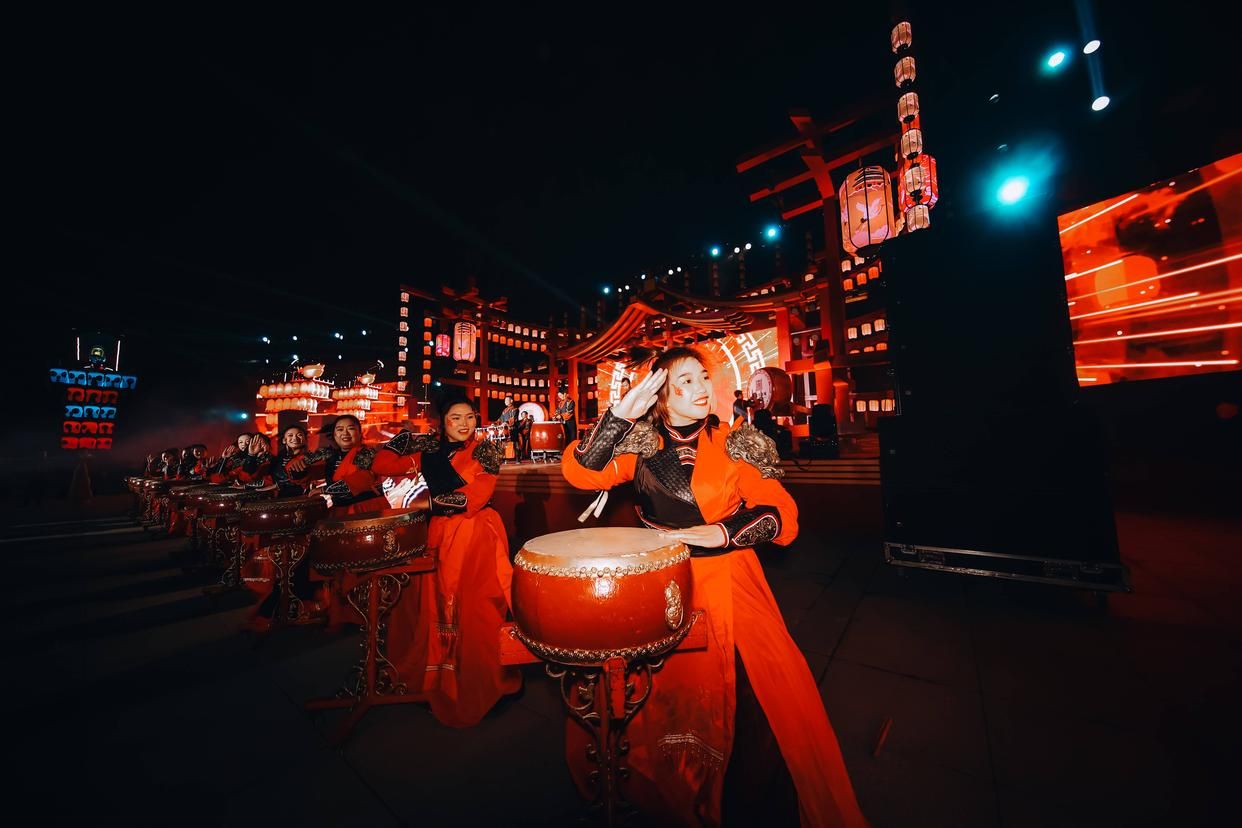 开城仪式上,十四位“宋潮NPC天团”集体亮相,他们是城中的故事主角,也是带领游客“做回宋潮人”的金钥匙,瞬间将现场气氛推向高潮。随后,与会领导共同按下启动装置,万盏宋灯同时点亮,千架无人机矩阵腾空而起——灯火与文脉共燃,城门应声洞开。一座可游、可沉浸、可生活的宋潮不夜城,自此启幕。